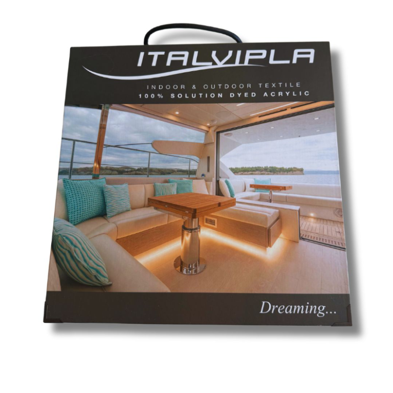 Tessuto acrilico con alta tenuta del colore agli agenti atmosferici, morbido ed elegante, adatto per il rivestimento di cuscini esterni sia in ambiente marino che civile.